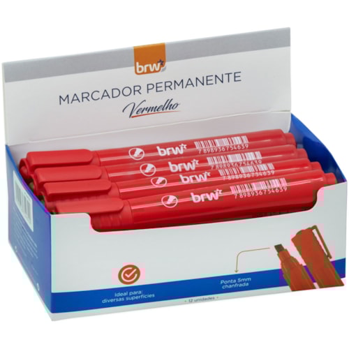 Marcador Permanente BRW Vermelho 12 Unidades